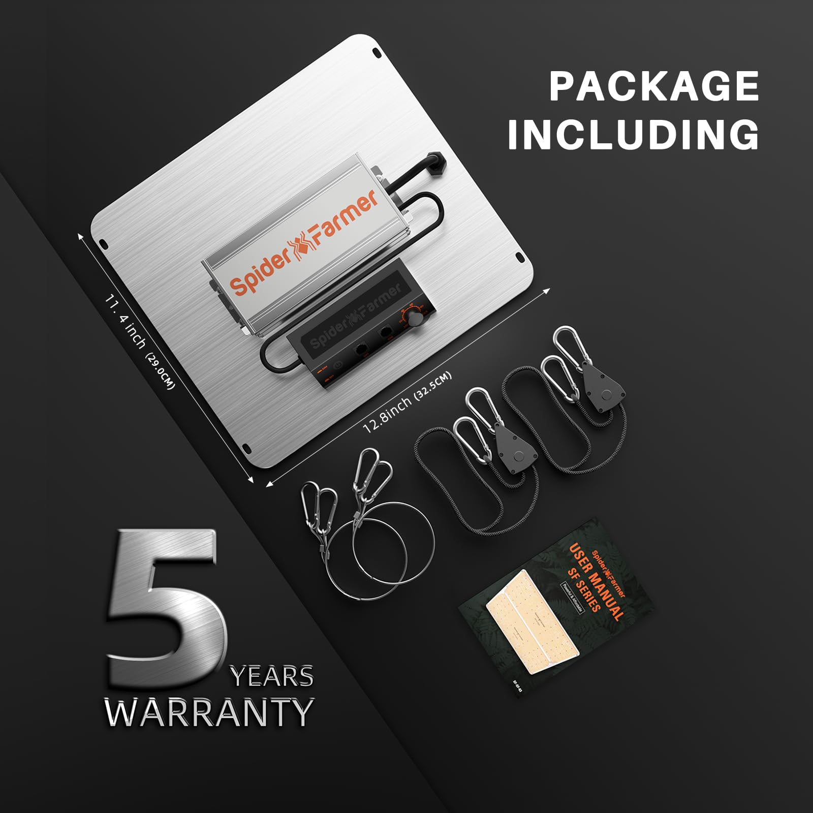 - 5-Year Warranty: Our LED Plant Lights are often copied but will never have our quality or commitment, we provide 5 years of after-service at a local maintenance center(US/CA/UK/EU/AU). Make sure you purchase authentic Spider Farmer grow lights, really can give you high-quality grow lights – at a price that is affordable. For any questions, feel free to e-mail us, and we will help you resolve them.